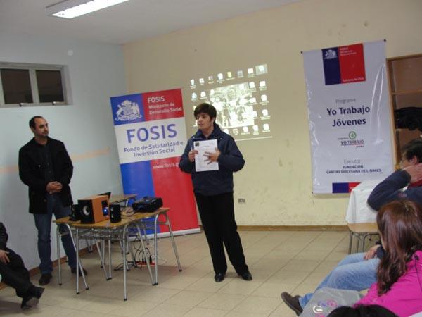 El primer taller de trabajo contó con la asistencia de la Directora Regional del Fondo de Solidaridad e Inversión Social, María Claudia Jorquera Coria, y profesionales de Caritas, quienes explicaron a los jóvenes los principales aspectos del programa que busca apoyarlos a encontrar un empleo dependiente o independiente para que puedan aumentar sus ingresos. Está focalizado en jóvenes sin trabajo o con un trabajo precario, que tengan entre 18 y 24 años y puntaje menor o igual a 8.500 puntos en la Ficha de protección Social o que pertenezcan al Sistema Chile Solidario. En el caso de este proyecto, los usuarios y usuarias provienen de las comunas de Villa Alegre, Colbún, Longaví y Linares. Junto a la Directora Regional, participaron en una actividad lúdica y se les entregaron bolsos con los materiales de trabajo. Además, firmaron un acta donde se comprometieron a participar activamente en este programa.