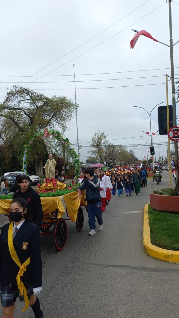 Liceo Nuestra Señora del Rosario, con su comunidad Educativa en pleno, celebra a su Patrona, Nuestra Señora de La Merced, con una Procesión por las calles de Linares, recorrido que llegó hasta la Iglesia Catedral, para participar en la Eucaristía presidida por Monseñor Tomislav Koljatic, concelebrando el Capellán, P. Alex Julio Troncoso, quien junto a las religiosas Mercedarias, acompañaron todo el recorrido por las avenidas de la ciudad.
