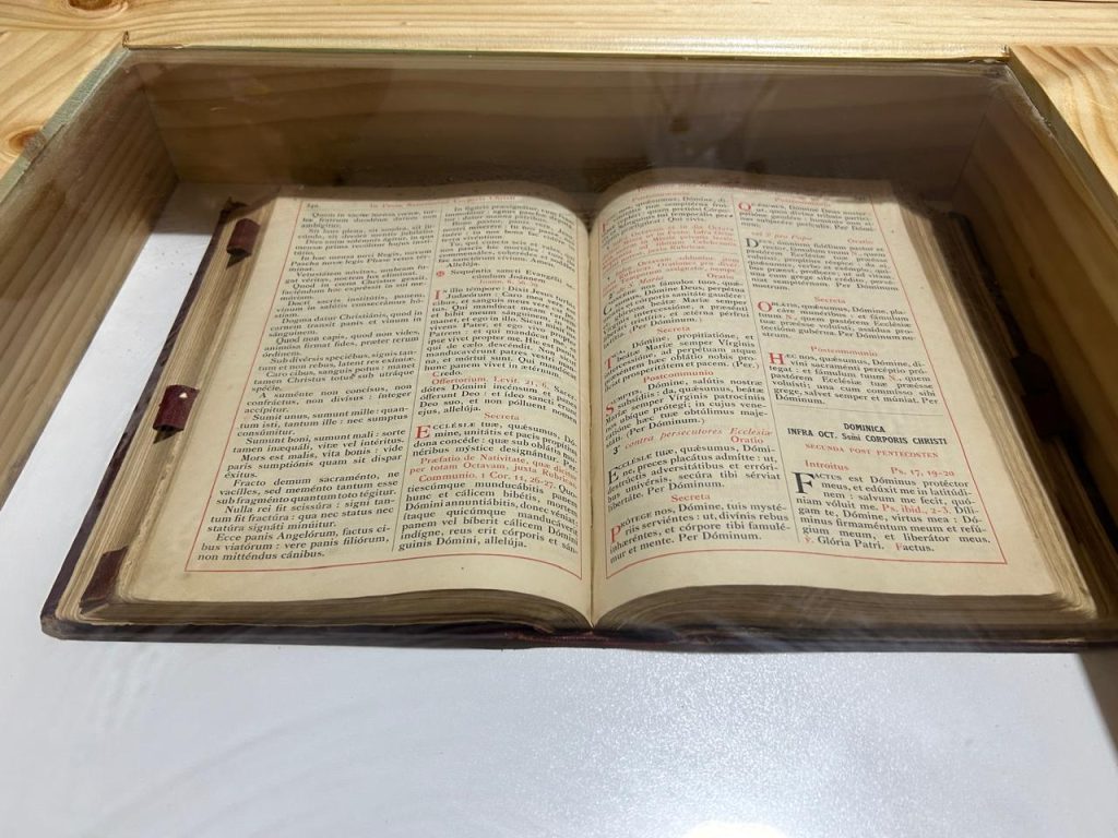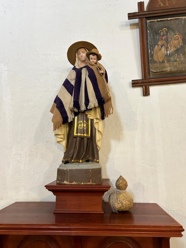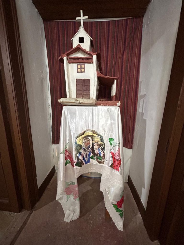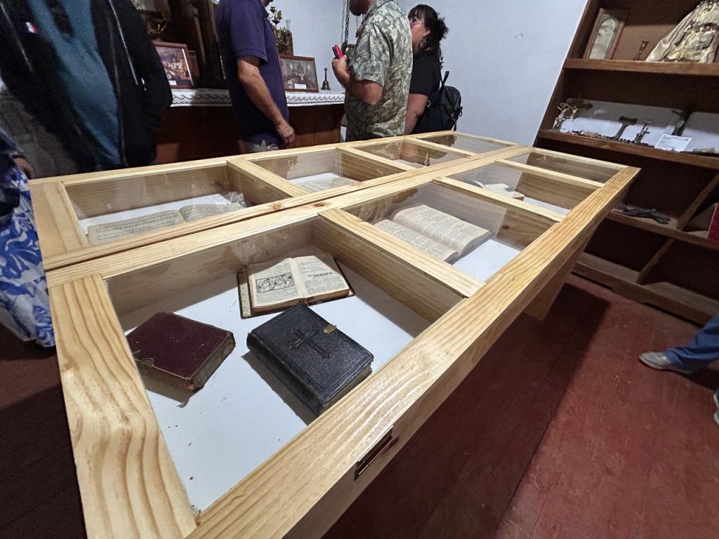 La “Sala de muestras patrimonial, cultural y religiosa”, se divide en dos espacios uno dedicado a la exhibición de artículos domésticos en desuso que reflejan la evolución de la sociedad local. En el otro espacio se pueden apreciar artículos religiosos inactivos, a través de los cuales se evidencia el desarrollo de la vida y devoción de un pueblo que lucha por defender su fe y tradiciones de devoción popular que van pasando de generación en generación, especialmente desde el testimonio de sus propios habitantes.