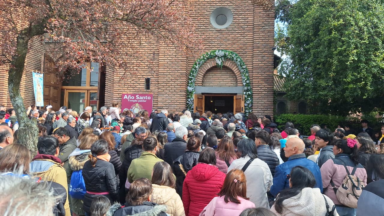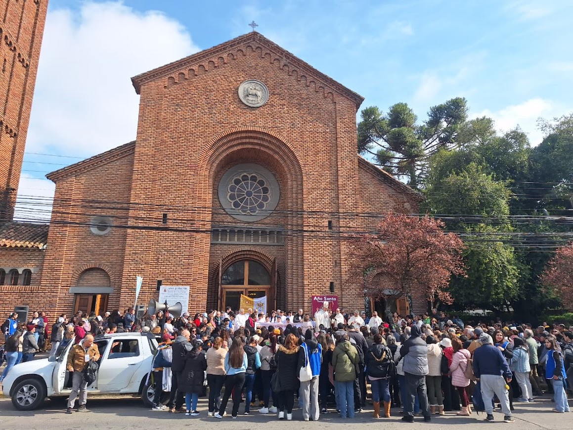Una vez en Linares, los peregrinos fueron recibidos en el Colegio San Miguel para compartir un fraterno desayuno y, posteriormente, continuar su andar por las calles de la ciudad hacia la Catedral, donde les esperaba el Obispo Diocesano, Monseñor Tomislav Koljatic, quien con palabras de acogida los animó a cruzar la Puerta Santa y vivir con intensidad este signo de renovación espiritual.