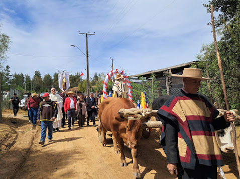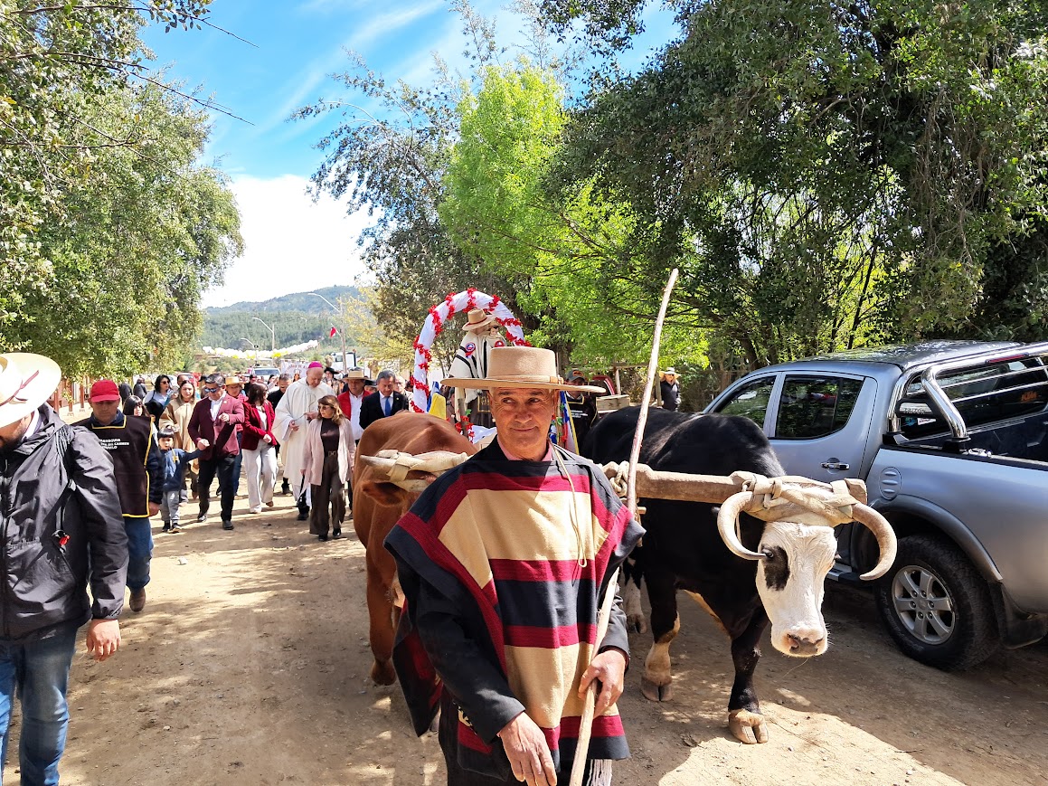 La misa fue seguida por una colorida procesión, en la que la imagen de la Virgen Campesina fue llevada en una tradicional carreta tirada por bueyes, guiada con gran dedicación por don José Montecinos, quien, pese a pertenecer a otra confesión religiosa, ha servido con amor y respeto este rol durante más de 15 años, trayectoria que fue reconocida por el Club de Cabalgata y tradiciones campesinas de Nirivilo. En la figura de Don José Heriberto, se recordó además a Don Guillermo Muñoz Muñoz, a Don Reinaldo Concha y a Don Manuel González, quienes ya descansan en la Paz del Señor, pero su legado perdura. Cabe destacar que la carreta es gentilmente facilitada por un pastor evangélico del mismo pueblo, gesto que habla de una fe que une y trasciende diferencias.