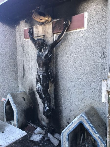 Vándalos queman imágenes del Calvario en el sector de Piguchen, al lado de la Escuela, correspondiente a la Parroquia San Ramón de Retiro, en el Decanato de Parral.