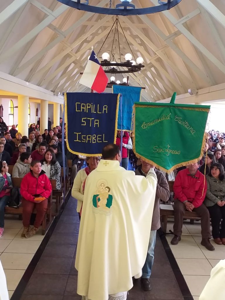 El domingo 1º de septiembre, arribando desde muy temprano, llegaron las comunidades de los distintos rincones de la parroquia, pues la cita era para celebrar a San Ramón, el Patrono de la sede parroquial. Los representantes de las capillas traían con orgullo sus estandartes y sus ofrecimientos que luego pusieron ante el altar, como ofrenda y testigo de su trabajo y esfuerzo, en comunión con toda la Iglesia.