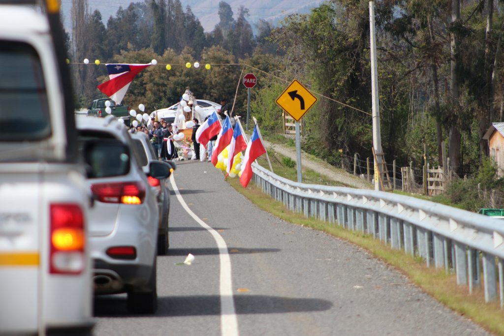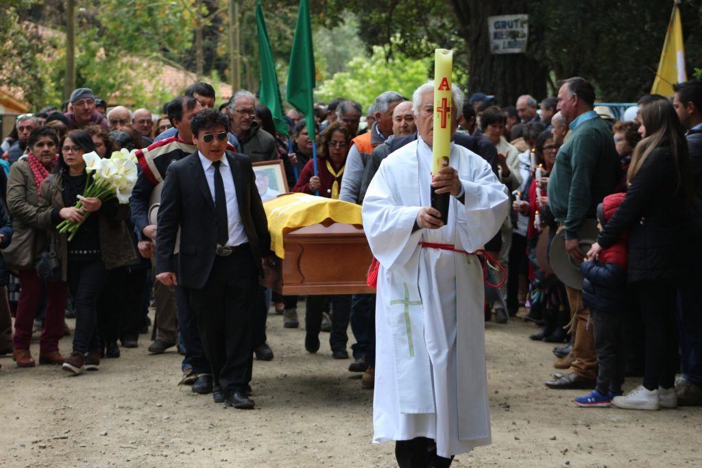 Al lento paso del féretro, escoltado por vehículos particulares y buses, se podía ver cómo las comunidades le esperaban para despedirlo, globos, flores, letreros, pañuelos, lágrimas, oraciones y cantos que expresaban emoción, gratitud y muchísimo cariño, ganado con cercanía, pues cada uno de los presentes tenía una y muchas historias de lo compartido, aprendido y enseñado por el P. Juan Garbarino Crovo, quien ha dejado huellas profundas en la Diócesis de San Ambrosio de Linares y sus queridas comunidades de la precordillera.