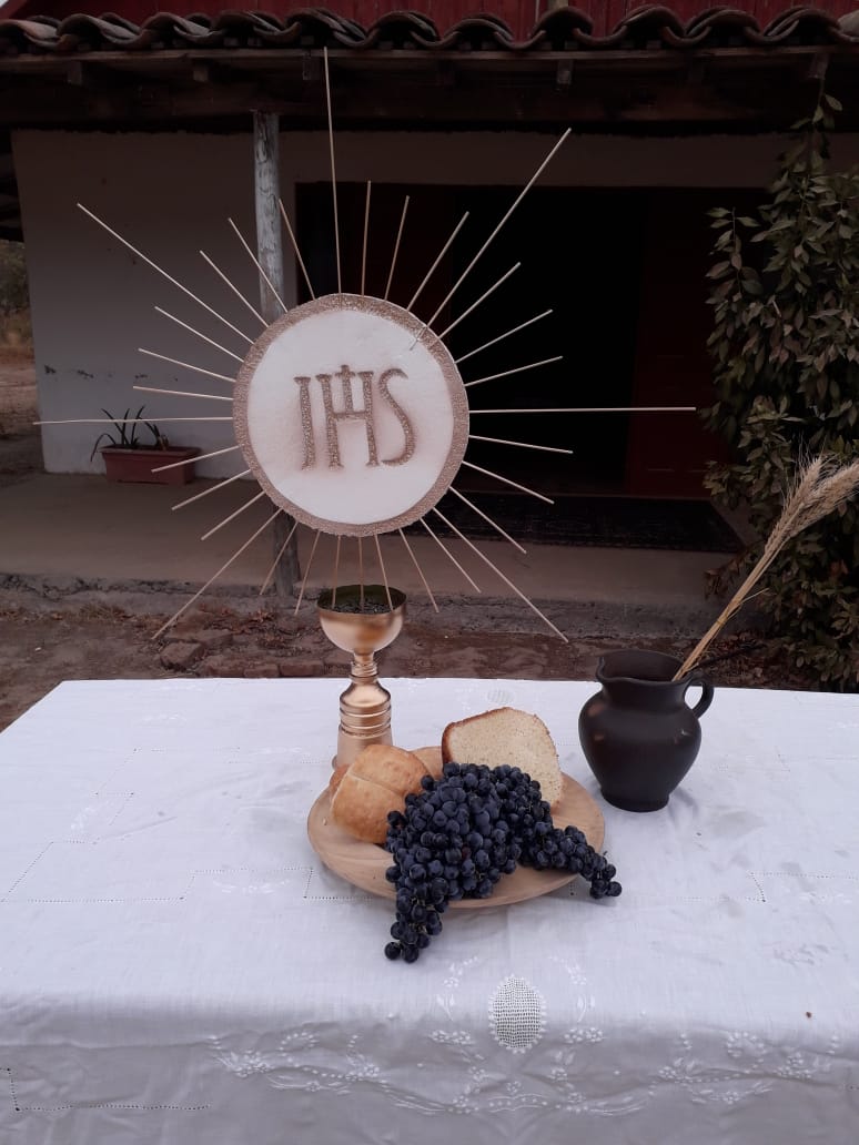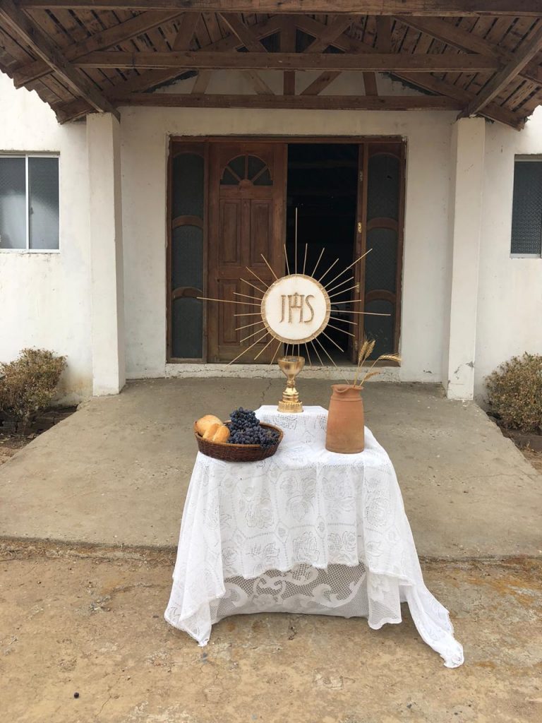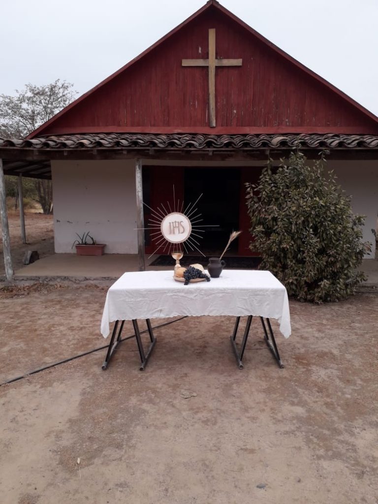 “Nuestra gran esperanza, está puesta en la FE que tenemos en Dios y en la fuerza de la oración”, eso dicen en la Comunidad de Caliboro Alto, al interior de la Parroquia Santa Rosa, Melozal, quienes han querido significar el Jueves Santo, instalando en el frontis de la Capilla, un improvisado Altar, confeccionado con material reciclado, “así los vencimos al pasar, pueden hacer oración, manteniendo la distancia social”.