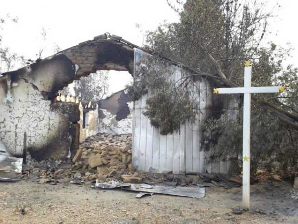 Pero las primeras horas del 2012, un incendio que afecta a una amplia zona de Cauquenes, ya arrasó con algunas viviendas y la Capilla Cancha Los Huevos, en el sector de Rahue, a 26 kilómetros al sur de Cauquenes. Esta Capilla atendía a cerca de 60 familias de Rahue y Las Tunas. Lamentablemente las condiciones climáticas, la dirección del viento y la lejanía de la comunidad, impidieron detener esta tragedia.